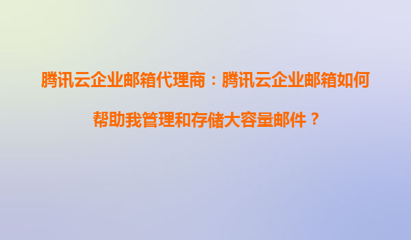 2025-09-16腾讯云企业邮箱代理商:腾讯云企业邮箱如何帮助我管理和存储大容量邮件? 引言 在现代企业中,电子邮件不仅是沟通的重要工具,更是业务往来、文件传输和信息存...