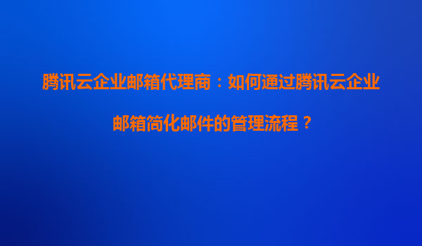 2025-09-16腾讯云企业邮箱代理商:如何通过腾讯云企业邮箱简化邮件的管理流程? 一、腾讯云企业邮箱简介 随着企业数字化转型的加速,高效、安全的邮件通信成为企业日常运营的重要需求。腾讯云企业邮...