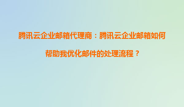 2025-09-16腾讯云企业邮箱代理商:腾讯云企业邮箱如何帮助优化邮件处理流程? 在数字化转型的浪潮中,高效的沟通工具是企业提升生产力的关键。作为企业办公的核心场景之一,邮件的处理效率直接影响内部协作和客户服...