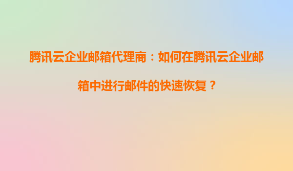 2025-09-16腾讯云企业邮箱:高效邮件恢复方案的专业之选 作为企业日常沟通的重要工具,邮箱数据的安全性与可恢复性至关重要。腾讯云企业邮箱凭借其强大的技术架构与备份机制,为企业用户提供了高效的邮件恢复解决方案。本...