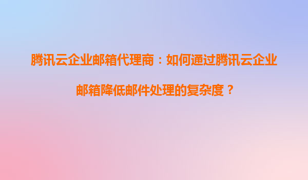 2025-09-16腾讯云企业邮箱代理商:如何通过腾讯云企业邮箱降低邮件处理的复杂度? 一、企业邮件管理的核心痛点 随着企业数字化进程加速,邮件作为核心沟通工具,其管理复...