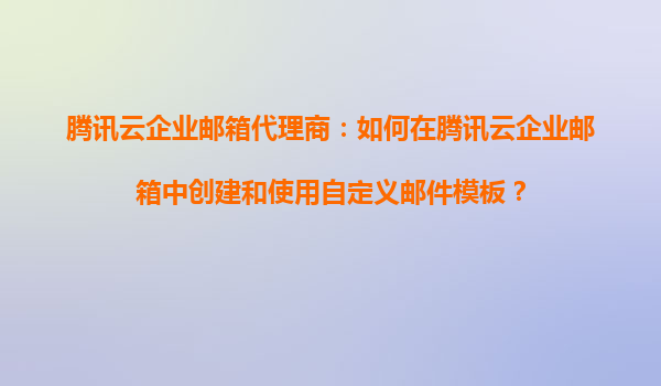 2025-09-05腾讯云企业邮箱代理商:如何在腾讯云企业邮箱中创建和使用自定义邮件模板? 一、腾讯云企业邮箱的优势 作为国内领先的云计算服务提供商,腾讯云企业邮箱凭借其稳定、安全、高效的特性,成为众多企业的首选。...
