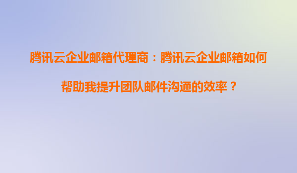 腾讯云企业邮箱代理商:腾讯云企业邮箱如何帮助我提升团队邮件沟通的效率? 在当今快节奏的商业环境中,高效的团队沟通是企业成功的关键因素之一。作为企业日常沟通的核心工具之一,企业邮箱的选择直接影...