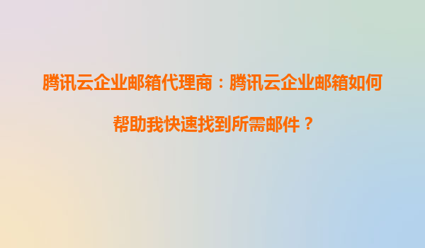 2025-09-05腾讯云企业邮箱代理商:腾讯云企业邮箱如何帮助我快速找到所需邮件? 在现代商业环境中,高效沟通是企业运营的核心。而邮件作为企业内外沟通的重要工具,其管理效率直接影响团队的工作效能。腾讯云企业邮箱凭...