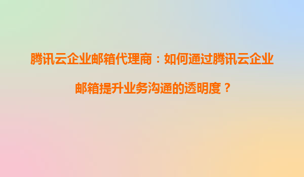2025-09-05腾讯云企业邮箱代理商:如何通过腾讯云企业邮箱提升业务沟通的透明度? 在数字化时代,企业沟通的透明度和效率直接影响团队协作和业务发展。作为腾讯云企业邮箱代理商,我们深知一款高效、安全的企业邮箱解决方案...