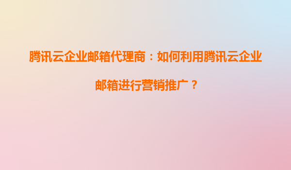 腾讯云企业邮箱代理商:如何利用腾讯云企业邮箱进行营销推广? 一、腾讯云企业邮箱的核心优势 腾讯云企业邮箱作为国内领先的企业级邮件服务,具备以下核心优势: 高可靠性:基于腾讯云全球分...