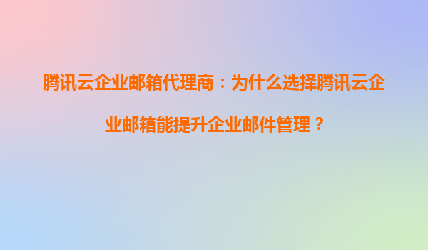 2025-08-28腾讯云企业邮箱代理商:腾讯云企业邮箱如何提高团队的沟通响应速度? 一、腾讯云企业邮箱的核心优势 腾讯云企业邮箱作为国内领先的企业级邮箱服务,依托腾讯强大的技术实力和生态资源,具备以下核心优势: ...