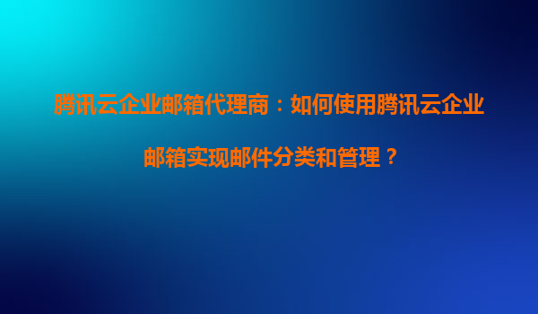 2025-08-28腾讯云企业邮箱代理商的邮件分类与管理指南 作为腾讯云企业邮箱代理商,我们深知高效邮件管理对企业运营的重要性。腾讯云企业邮箱凭借其强大的功能和稳定的性能,成为众多企业的首选。本文将详细介绍如何利用腾讯云...