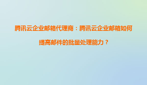 2025-08-28腾讯云企业邮箱代理商:如何提升邮件批量处理能力 在数字化办公时代,企业邮箱的高效管理直接影响团队协作与业务沟通。腾讯云企业邮箱凭借其稳定、安全的服务,成为众多企业的首选。而通过腾讯云代理商的专业支...