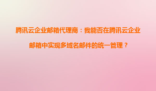 2025-08-24腾讯云企业邮箱代理商:多域名邮件的统一管理解决方案 在当今数字化商业环境中,企业往往拥有多个业务线或分支机构,每个部门可能使用不同的域名邮箱。如何高效管理这些分散的邮件系统成为企业IT管理的痛点。作...