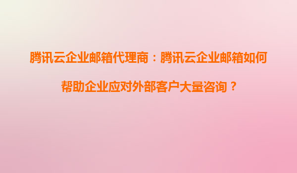 2025-08-24腾讯云企业邮箱代理商:腾讯云企业邮箱如何帮助企业应对外部客户大量咨询? 在当今快节奏的商业环境中,企业面临着来自外部客户的大量咨询需求。无论是售前咨询、售后服务还是技术支持,高效、稳定且安全的沟通...