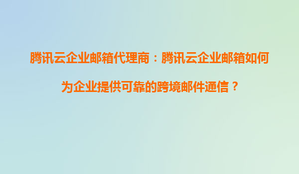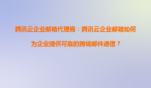 腾讯云企业邮箱代理商:腾讯云企业邮箱如何为企业提供可靠的跨境邮件通信? 在全球化商业环境中,跨境邮件通信已成为企业日常运营的重要组成部分。然而,由于网络环境、语言障碍、法律法规等因素,跨境邮件通信...