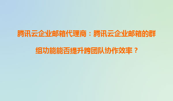 2025-08-23腾讯云企业邮箱代理商:腾讯云企业邮箱的群组功能能否提升跨团队协作效率? 引言:企业协作的痛点与需求 在数字化办公时代,跨团队协作的效率直接影响企业运营...