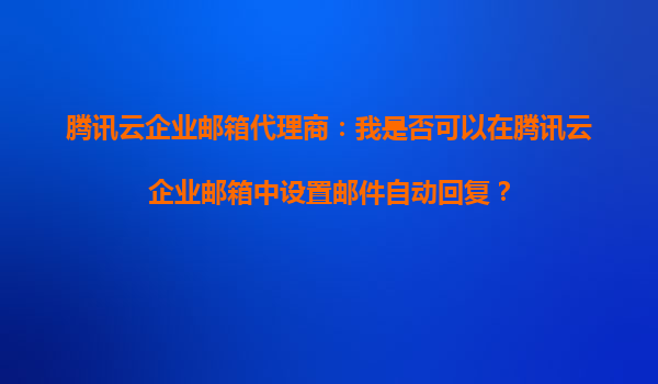 2025-08-23腾讯云企业邮箱代理商:我是否可以在腾讯云企业邮箱中设置邮件自动回复? 一、腾讯云企业邮箱的自动回复功能 腾讯云企业邮箱作为一款专业的企业级邮件服务,提供了丰富的功能以满足企业用户的需求。其中,...