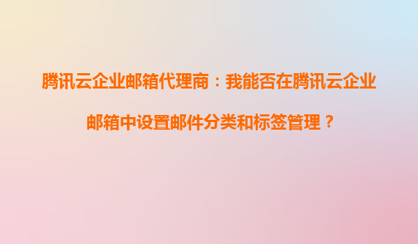 2025-08-23腾讯云企业邮箱代理商:邮件分类与标签管理功能详解 一、腾讯云企业邮箱的邮件分类与标签管理能力 作为腾讯云企业邮箱代理商,我们确认腾讯云企业邮箱支持完善的邮件分类和标签管理功能。用户可通过以下方...
