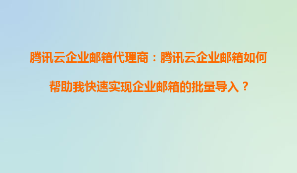 2025-08-21腾讯云企业邮箱代理商:腾讯云企业邮箱如何帮助我快速实现企业邮箱的批量导入 引言 在当今数字化办公环境中,企业邮箱不仅是沟通的重要工具,更是企业管理效率...