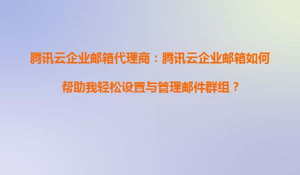 2025-08-21腾讯云企业邮箱代理商:腾讯云企业邮箱如何帮助我轻松设置与管理邮件群组? 在当今的企业运营中,电子邮件作为一项重要的沟通工具,扮演着至关重要的角色。随着企业规模不断扩大,团队内部沟通也变得更加复杂,如...