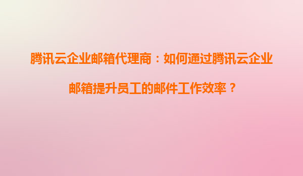 2025-08-21腾讯云企业邮箱代理商:如何通过腾讯云企业邮箱提升员工的邮件工作效率? 一、腾讯云企业邮箱的核心优势 作为腾讯云企业邮箱代理商,首先需要明确产品在提升员工效率方面的独特价值。腾讯云企业邮箱依托腾...