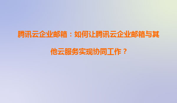 2025-08-19腾讯云企业邮箱:如何与其他云服务实现协同工作? 一、腾讯云企业邮箱的核心优势 腾讯云企业邮箱作为国内领先的企业级邮件解决方案,具备以下核心优势: 高可用性与安全性:...