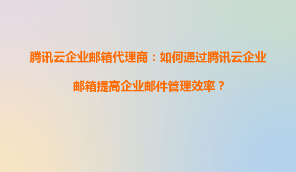 腾讯云企业邮箱代理商:腾讯云企业邮箱如何帮助我提高企业邮件的协作效率? 一、腾讯云企业邮箱的核心优势 腾讯云企业邮箱作为国内领先的企业级邮箱服务,依托腾讯多年的技术积累和丰富的...