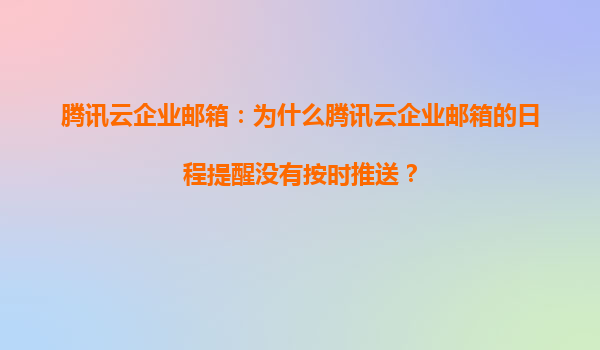 2025-08-19腾讯云企业邮箱:为什么腾讯云企业邮箱的日程提醒没有按时推送? 随着数字化办公的普及,企业邮箱已成为企业内部沟通和协作的重要工具。腾讯云企业邮箱作为国内领先的企业邮箱服务之一,凭借其强大的功能、稳定...