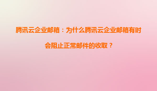 2025-08-19腾讯云企业邮箱:为什么腾讯云企业邮箱有时会阻止正常邮件的收取? 一、引言 腾讯云企业邮箱作为国内领先的企业邮箱服务之一,凭借其高安全性、稳定性和丰富的...
