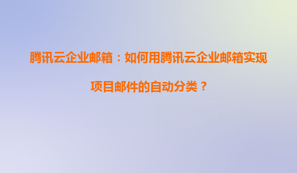2025-08-19腾讯云企业邮箱:如何用腾讯云企业邮箱实现项目邮件的自动分类? 一、引言 在企业的日常运营中,邮件是重要的沟通工具之一。尤其是对于项目管理来说,邮件往来频繁,若没有有效的分类管理,很容易导致...