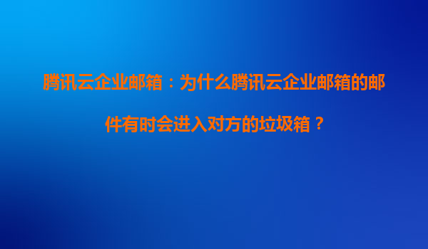 2025-08-19为什么腾讯云企业邮箱的邮件有时会进入对方的垃圾箱? 邮件进入垃圾箱的常见原因 无论是使用哪家企业邮箱服务,偶尔都会遇到邮件被对方系统误判为垃圾邮件的情况。出现这种情况往往和邮件内容、发送频率、发件...