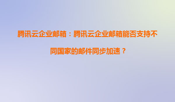 2025-08-18腾讯云企业邮箱的全球化邮件同步加速能力 随着企业全球化业务的扩展,跨国邮件通信的时效性和稳定性成为关键需求。腾讯云企业邮箱凭借其强大的基础设施和技术优势,为不同国家地区的用户提供高效稳定的邮件同步...