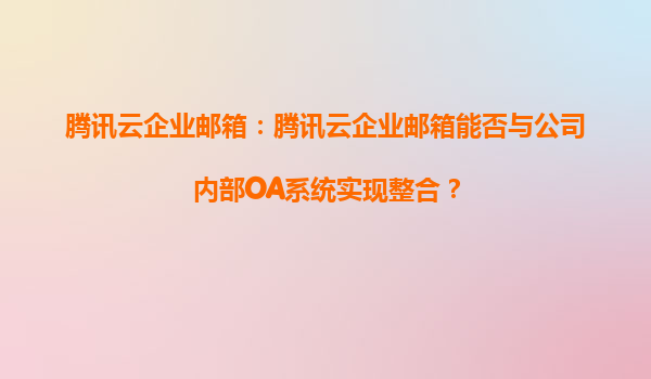 腾讯云企业邮箱:高效整合公司内部OA系统的解决方案 一、腾讯云企业邮箱的核心优势 腾讯云企业邮箱作为国内领先的企业级邮箱服务,凭借腾讯生态的技术积累,在安全性、稳定性和扩展性上具备显...