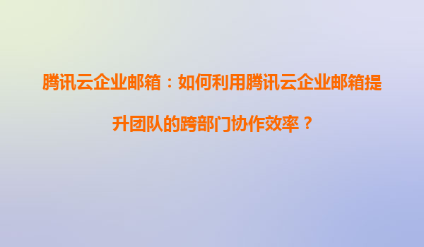 2025-08-18腾讯云企业邮箱:高效跨部门协作的数字化引擎 一、统一企业身份,打破沟通壁垒 腾讯云企业邮箱支持以企业域名(如@yourcompany.com)作为统一后缀,为所有部门成员分配专属账号。通过集中管理的通讯录功能...