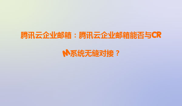 2025-08-17腾讯云企业邮箱:高效连接企业与客户,打造智能化办公生态 一、为什么需要企业邮箱与CRM系统对接? 在数字化转型加速的今天,企业邮箱早已不仅是简单的通信工具,更是企业内外协同的重要枢纽。而客户关系管理(CRM...