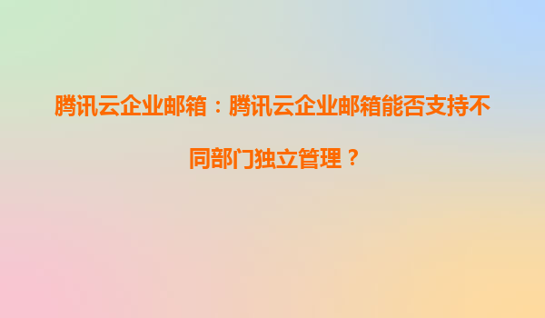 2025-08-18腾讯云企业邮箱:部门独立管理功能解析与优势 一、腾讯云企业邮箱的部门独立管理功能 腾讯云企业邮箱作为一款专业的企业级邮箱解决方案,其核心功能之一便是支持多层级部门独立管理。企业可根据实际组织架...