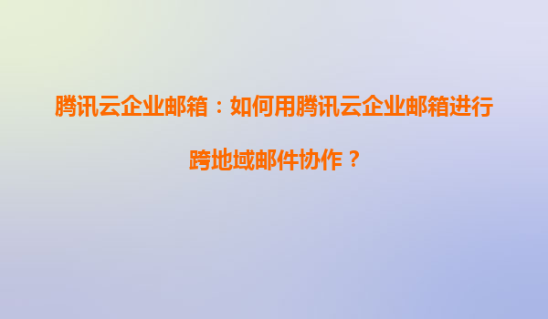 2025-08-18腾讯云企业邮箱:如何用腾讯云企业邮箱进行跨地域邮件协作? 一、腾讯云企业邮箱的核心优势 腾讯云企业邮箱依托腾讯强大的技术生态,为企业用户提供安全、稳定、高效的邮件服务,其核心优势包括: ...