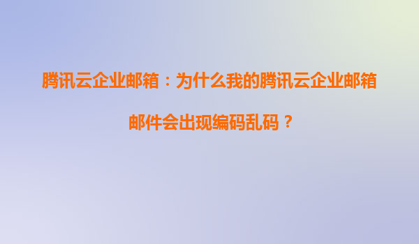 2025-08-17腾讯云企业邮箱:为什么我的腾讯云企业邮箱邮件会出现编码乱码? 一、邮件编码乱码问题的常见原因 在日常使用腾讯云企业邮箱时,偶尔会遇到邮件内容显示乱码的情况。以下是可能导致邮件乱码的几种常见原因...