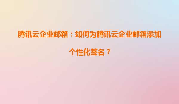 2025-08-18腾讯云企业邮箱:如何为腾讯云企业邮箱添加个性化签名? 一、腾讯云企业邮箱的核心优势 腾讯云企业邮箱是基于腾讯20余年邮件系统经验打造的企业级产品,其核心优势包括: 高可靠性:依托腾讯分布式...