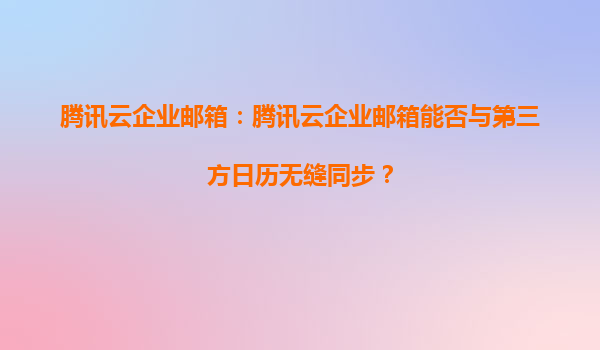 2025-08-17腾讯云企业邮箱:腾讯云企业邮箱能否与第三方日历无缝同步? 一、腾讯云企业邮箱的核心优势 腾讯云企业邮箱作为一款专为企业设计的邮件服务,依托腾讯强大的技术生态,具备以下核心优势: ...