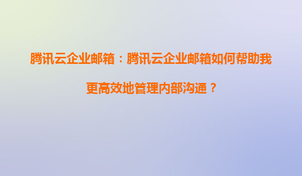 2025-08-17腾讯云企业邮箱:助力高效内部沟通管理的智能化解决方案 一、为什么选择腾讯云企业邮箱? 在数字化转型的浪潮中,企业内部的沟通效率直接影响团队协作质量与业务响应速度。腾讯云企业邮箱作为...