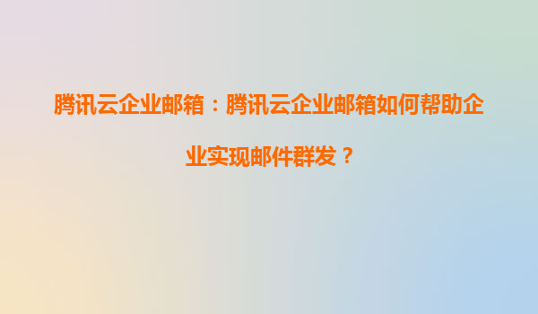 2025-08-16腾讯云企业邮箱:腾讯云企业邮箱如何帮助企业实现邮件群发? 一、腾讯云企业邮箱的核心优势 腾讯云企业邮箱作为一款基于云计算技术的企业级邮件服务产品,凭借腾讯多年的技术积累和资源支持,为企...