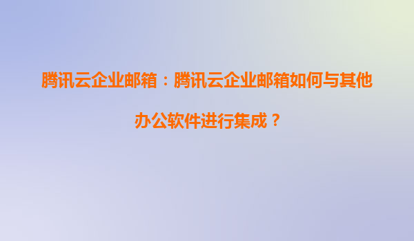 2025-08-16腾讯云企业邮箱:高效集成其他办公软件的全方位解决方案 一、腾讯云企业邮箱的核心优势 作为腾讯云推出的专业企业级邮件服务,腾讯云企业邮箱凭借以下优势成为中小企业及大型组织的首选: ...