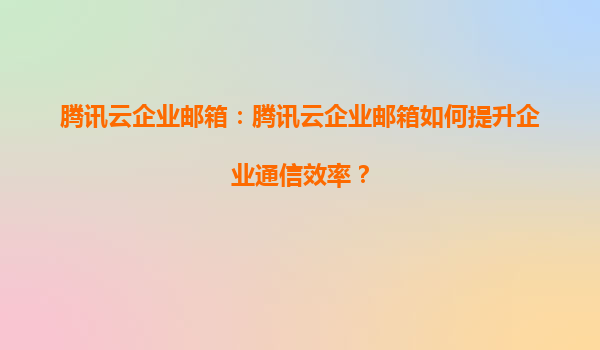 2025-08-16腾讯云企业邮箱:如何通过腾讯云企业邮箱管理多个邮箱账户? 一、腾讯云企业邮箱的核心优势 腾讯云企业邮箱是基于腾讯多年邮件系统技术积累打造的云端邮箱服务,专为企业用户设计。...