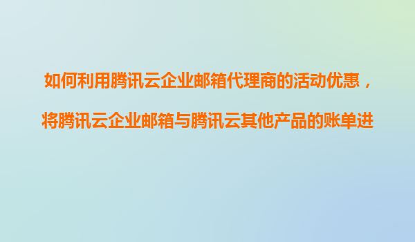2025-11-13如何利用腾讯云企业邮箱代理商的活动优惠实现多产品账单合并与套餐优惠 一、腾讯云的核心优势解析 作为国内领先的云计算服务商,腾讯云具备以下核心优势: 生态整合能力:企业邮箱可与云服务...