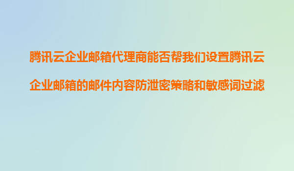 2025-11-14腾讯云企业邮箱代理商能否协助设置邮件内容防泄密策略与敏感词过滤? 在当前的数字化办公环境中,企业邮箱不仅是沟通工具,更是信息传递的核心渠道。邮件内容的安全性直接影响企业商业机密和客户数据的保护...