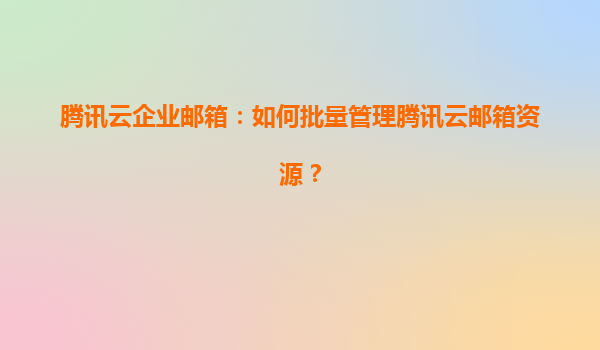 2025-08-16腾讯云企业邮箱:如何批量管理腾讯云邮箱资源? 一、腾讯云企业邮箱的核心优势 腾讯云企业邮箱是基于云端的企业级邮件服务,提供高可用性、安全稳定的邮件解决方案。其核心优势包括...
