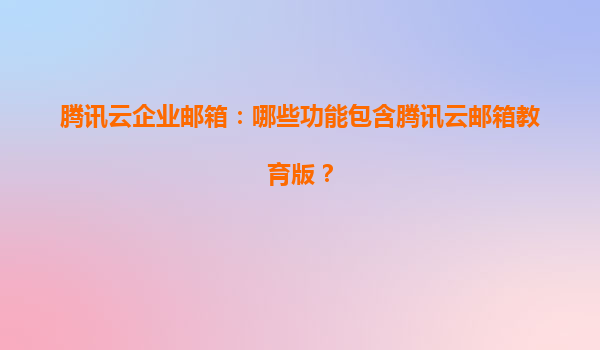 腾讯云企业邮箱教育版功能详解及代理商优势 一、腾讯云企业邮箱教育版核心功能 腾讯云企业邮箱教育版是专为教育机构设计的云端邮件解决方案,包含以下核心功能: 专属域...