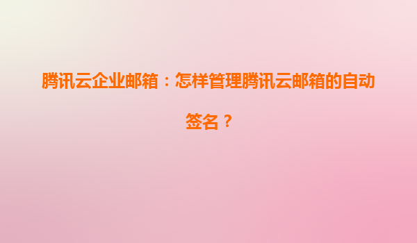 2025-08-13腾讯云企业邮箱自动签名功能详解 什么是自动签名功能 腾讯云企业邮箱的自动签名功能,允许用户在发送邮件时自动在邮件末尾添加预设的签名内容。这项功能不仅支持文字签名,还可以插入图片、超链接等元素,满足...