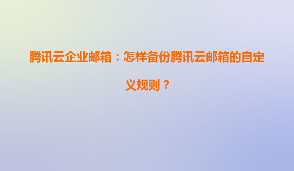 2025-08-11腾讯云企业邮箱:如何备份自定义规则及产品优势解析 一、为什么要备份自定义规则? 腾讯云企业邮箱的自定义规则功能(如邮件自动分类、转发、标记等)能显著提升办公效率。但系统重装、...