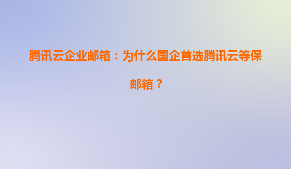 2025-08-11腾讯云企业邮箱:为什么国企首选腾讯云等保邮箱? 引言 在数字化转型的浪潮中,国有企业对信息安全的需求日益增长。作为国内领先的云计算服务商,腾讯云企业邮...