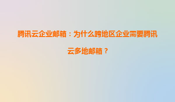 跨地区企业为何需要腾讯云多地邮箱? 在全球化与数字化深度融合的今天,跨地区经营的企业面临着沟通效率、数据合规性以及管理协同等多重挑战。腾讯云多地邮箱凭借其分布式架构与全球化部署能力,成为企业高效办公...