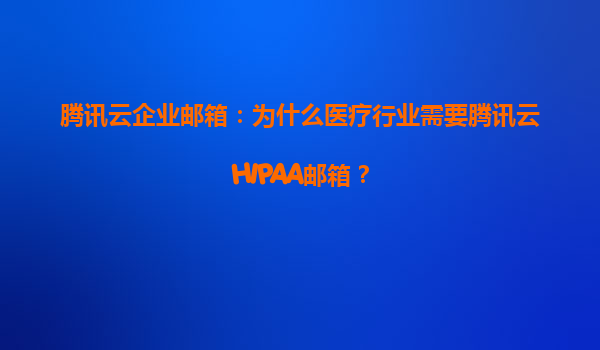 2025-08-09腾讯云企业邮箱:为什么医疗行业需要腾讯云HIPAA邮箱? 医疗行业的特殊需求 在数字化时代,医疗行业对数据安全和隐私保护的要求尤为严格。患者健康信息(PHI)的泄露不仅会导致法律纠纷...